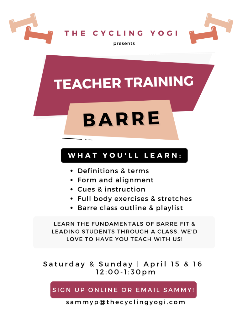 - TCY Barre Fit Certificate upon completion